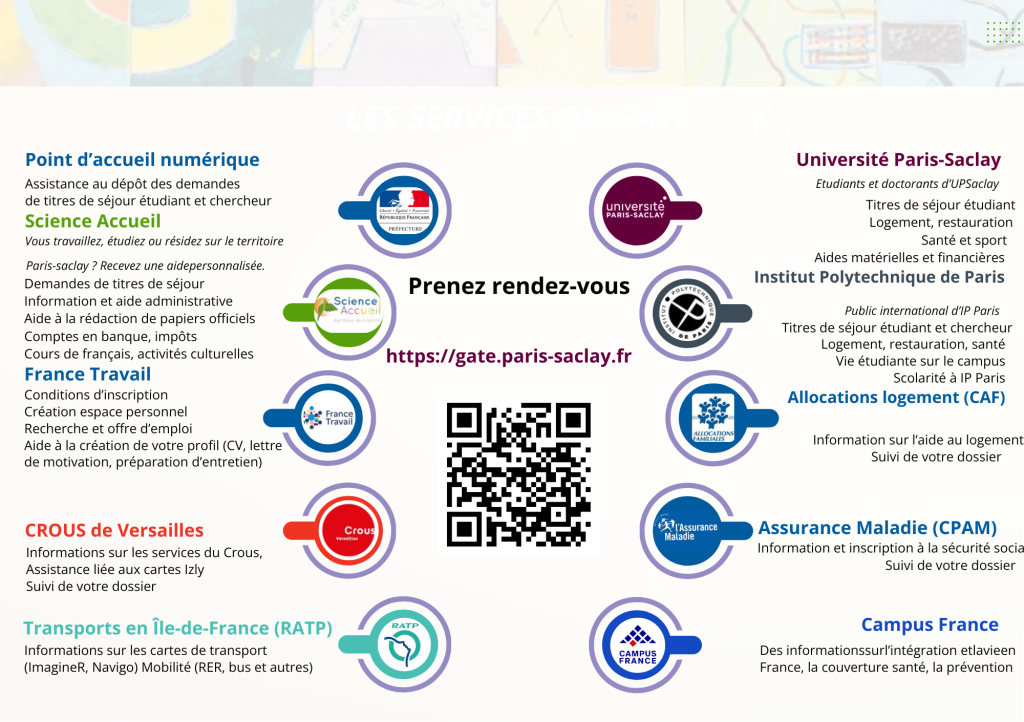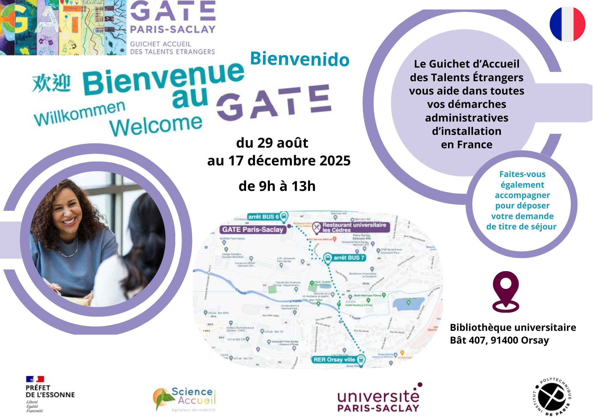 Plateforme multiservices, le GATE propose à tous publics internationaux étudiants et scientifiques vivant ou travaillant sur le territoire de Paris-Saclay, une offre de service centralisée permettant l’accomplissement des principales démarches administratives obligatoires à leur installation et leur séjour en France